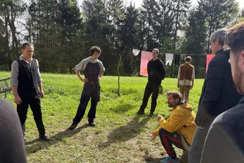 Prejšnji teden je v Medvodah padla prva klapa nove igrane serije Pošast za železno zaveso. / Foto: Zavod 666 Productions (Eva Tomazin Zevnik)