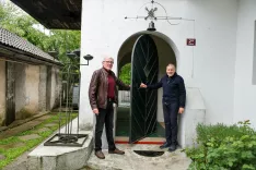 Brata Karol in Franci Kuhar v kletnem prostoru / Foto: Tina Dokl