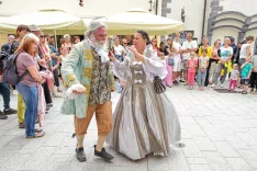 Radovljica – Semenj je dopoldne v izvedbi igralske skupine, ki nosi njegovo ime, slavnostno odprl vitez Gašper Lambergar z bližjega gradu Kamen z dvorom. Ta je na trgu tudi zaplesal, pred cerkvijo pa so se stari in mladi pod budnim nadzorom Gašperjevih vitezov pomerili na lokostrelskem turnirju.