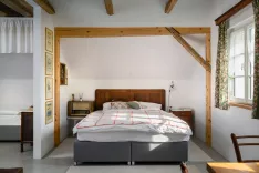 Propadajoča objekta bi marsikdo nadomestil z novogradnjo, a Mateja Panter je v njih videla priložnost za novo zgodbo. V stari domačiji, ki je dobila ime Hiša 1797, je zasnovala koncept, primeren za oddajanje v turistične namene, dom zase in za družino pa je ustvarila s temeljito prenovo in preureditvijo gospodarskega poslopja. »Takoj ko smo si ogledali notranjosti obeh hiš, nam je bilo jasno, da bo domačija primernejša za turiste, ki si želijo izkusiti avtentičnost slovenske arhitekture, družinsko domovanje pa si bo zaradi več možnosti preurejanja in visokih stropov bolje urediti v gospodarskem poslopju,« pravi avtorica obeh prenov, ki sta poželi tudi odobravanje stroke. Po tem, ko je na lanskem festivalu oblikovanja BIG Design nagrado za interier leta dobila Hiša 1797, je bila na letošnji oktobrski izvedbi festivala nagrajena še Hiša z verando, kot se imenuje novi dom družine Mateje Panter.