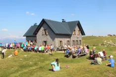 Stoto obletnico odprtja prve Krekove koče so zaznamovali na nedavni 71. prireditvi Ratitovec raja. Planinci so dan izkoristili za druženje, ples in uživanje ob lepem razgledu. / Foto: Alojz Lotrič