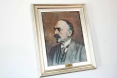 Albin Belar na sliki Janeza Lapajneta; portret je v prostorih uprave Triglavskega narodnega parka. / Foto: Gorazd Kavčič