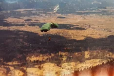 Jeseni leta 1982 se je namreč vpisal v zgodovino kot prvi Slovenec, ki je poletel s hriba s padalom. To še ni bilo moderno jadralno padalo, kakršno poznamo danes, temveč klasičen padalski model, namenjen skokom iz letala, vendar nekoliko prilagojen za polet z zemeljske točke. »Osvoboditi sem ga moral nekaj teže, tako da je ostala le še kupola padala,« je povedal Dare Svetina, tedanji član jugoslovanske padalske reprezentance, ki je idejo o poletu s hriba posvojil na Češkem, na enem od svetovnih prvenstev. »Zdelo se nam je zanimivo, pa smo si rekli – zakaj pa ne bi še mi. Bili smo mladi, polni poguma in izurjeni padalci. Star sem bil 22 let, za sabo sem imel že 2000 skokov iz letala, zato strahu skoraj ni bilo. Danes bi me zagotovo veliko bolj skrbelo, a takrat smo se le pošalili: če ne bo šlo po načrtih, se bom pa ujel na drevo in me bodo že rešili. Zato smo s seboj vzeli tudi žago in nekaj sekir, če bi bilo treba sekati veje dreves, na katere bi se zataknili.«
